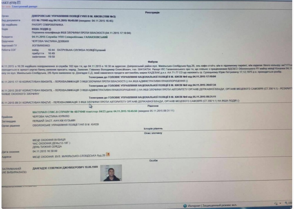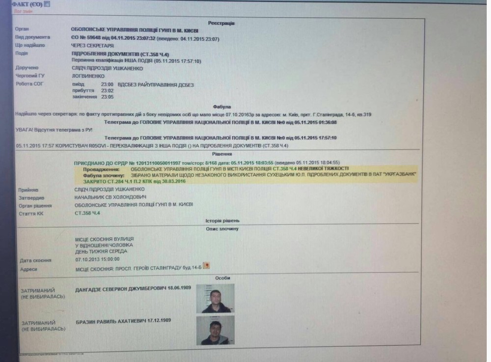 "Пидозра" Севериона Дангадзе, согласно которой он действовал вместе с Саакашвили, Курченко, Дынником и сотрудниками ФСБ, источник фото: facebook.com/nedilko.nikolay