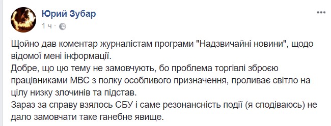 О дополнительных деталях случившегося на своей странице в Facebook написал Юрий Зубар – помощник нардепа Семена Семенченко.