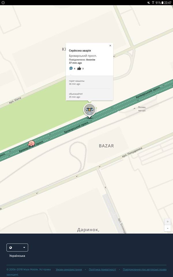 6 марта, за час до полуночи, в сети начали появляться первые сообщения об инциденте на Броварском проспекте.