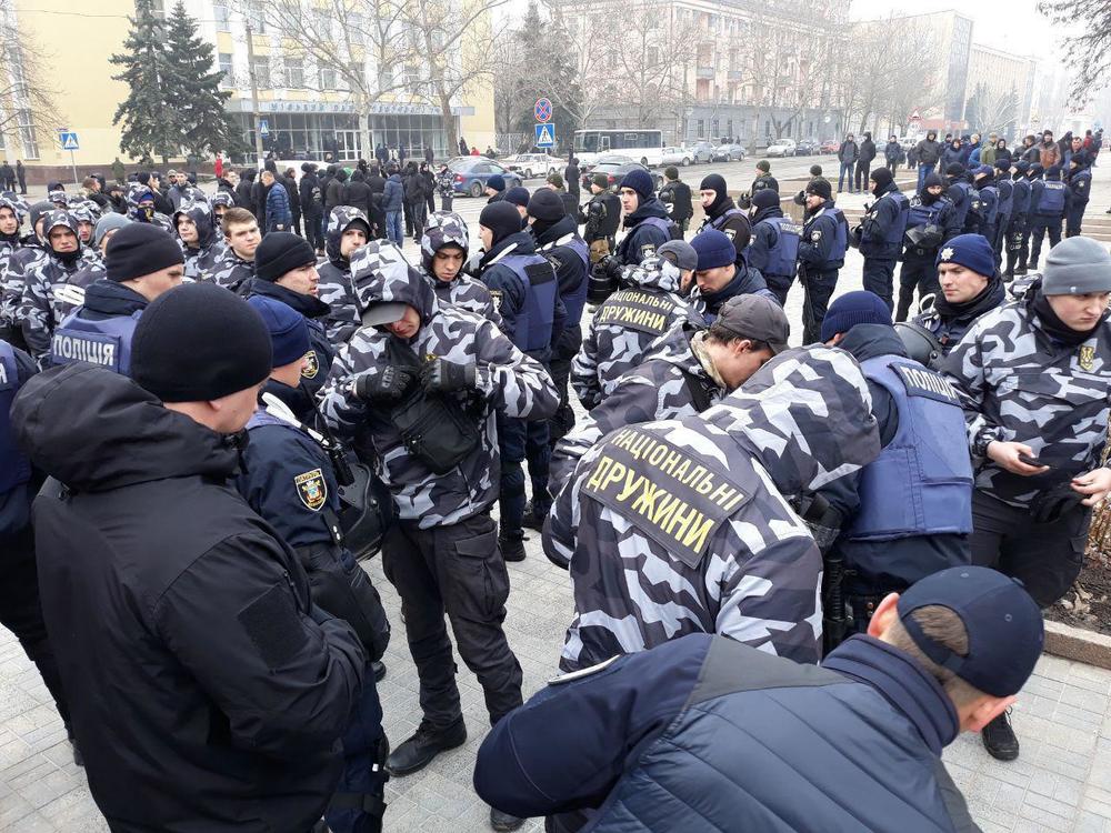 С утра 29 марта под зданием облсовета появились десятки представителей Нацдружин.