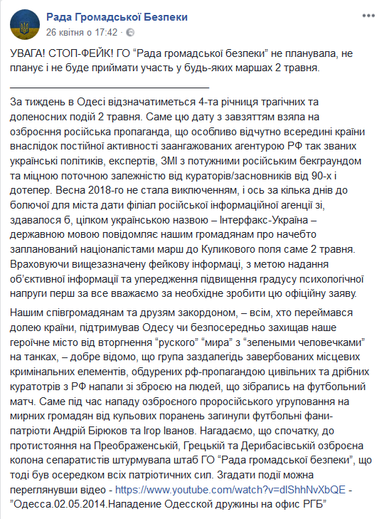 В свою очередь, организация РГБ - Рада Громадськой Безпеки, возглавляемая одесским активистом Марком Гордиенко назвала информацию о планируемом марше фейком - и отметила, что не собиралась устраивать никаких мероприятий в этот день.