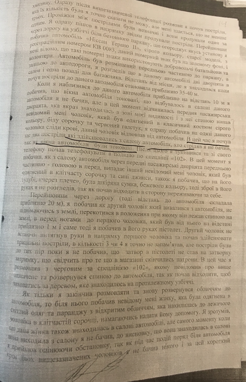 В защиту этой линии Кринари пытается обернуть и показания свидетеля Аркания, который на допросе заявил о том, что слышал два выстрела в машине "добробатовцев" уже после того, как из нее выпал "Динго" (но не вышел Осмаев).