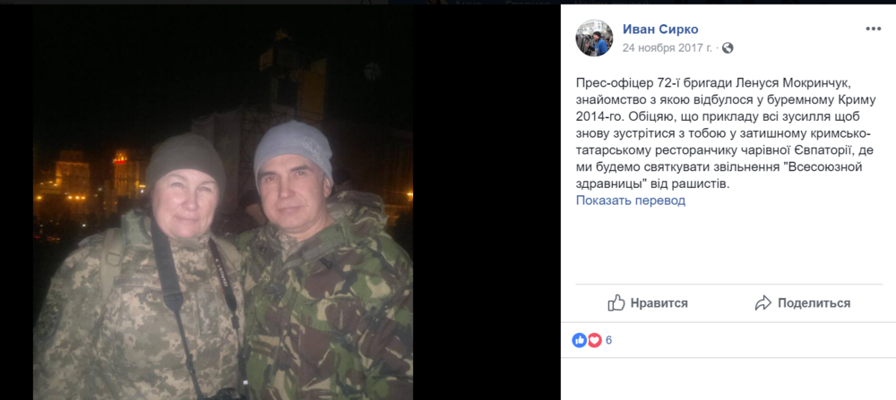 На тот момент рядом с "Иваном" уже находилась другая журналистка. "Он приглашал ее посетить будущий реабилитационный центр, который он мечтает открыть на Арабатской стрелке для лечения психического нездоровья украинских военных после АТО.