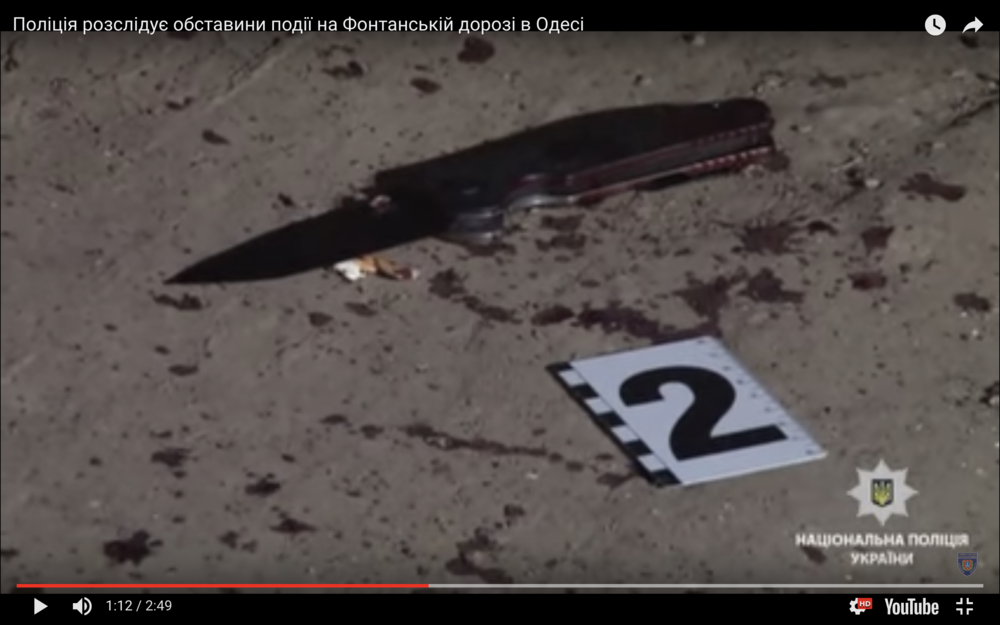 Нож, которым были ранены все три участника конфликта. Фото: YouTube ГУ Нацполиции в Одесской области