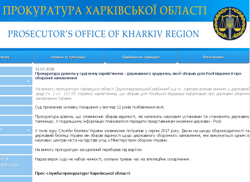 Поначалу прокуроры направили дело в Дзержинский районный суд Харькова. Но он отказался выносить приговор. Поводом стало наличие в деле секретных документов на военную тематику.
