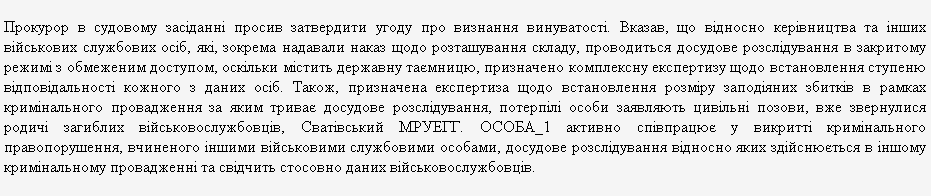 Каких-либо следов этого уголовного производства после июля 2016 года в реестре судебных решений нам обнаружить не удалось. А жалобы пострадавших жителей Сватово на сверхмягкий приговор майору Литвиненко и апелляционный суд Луганской области, и Высший спецсуд Украины отказались даже рассматривать.