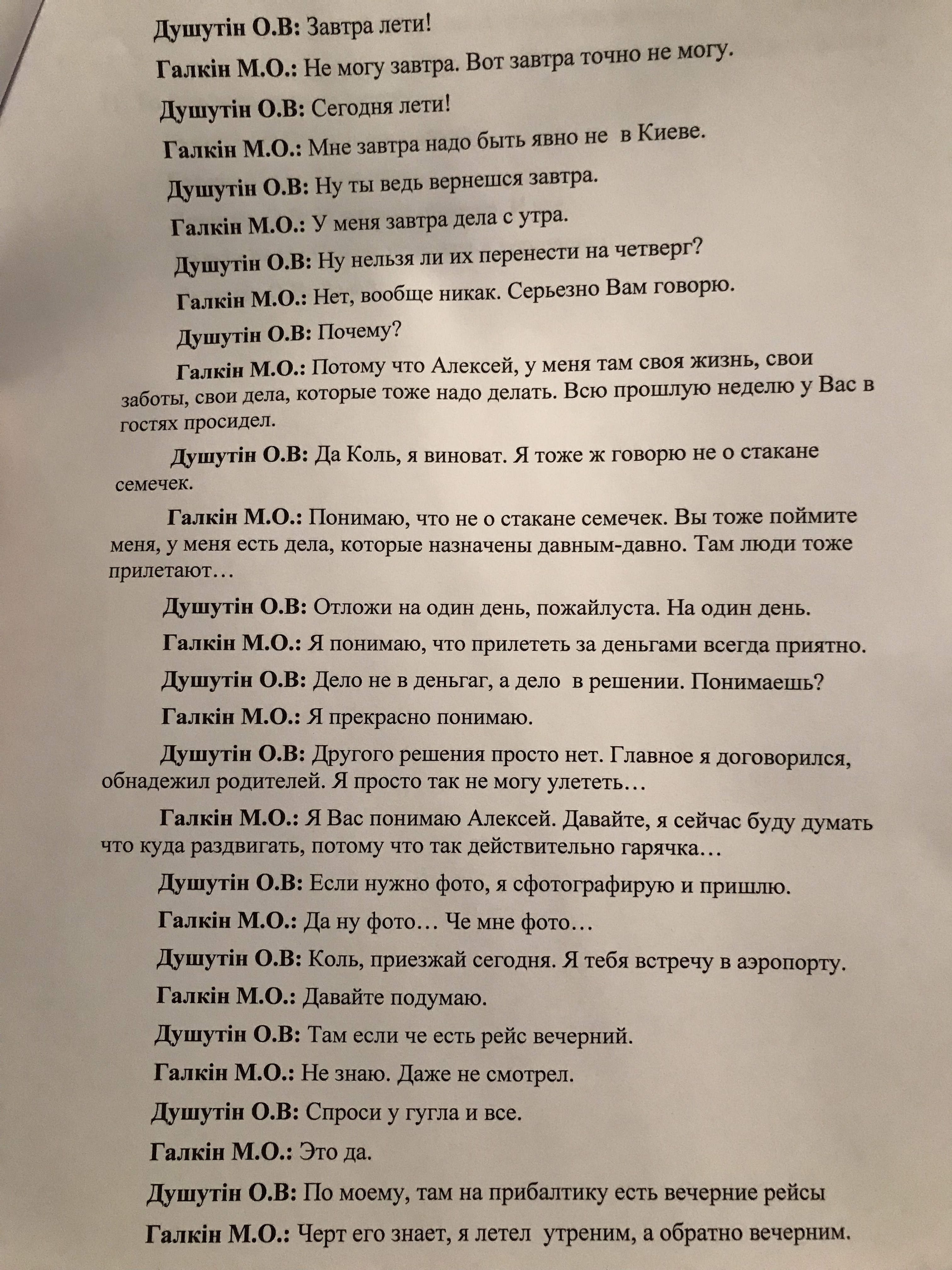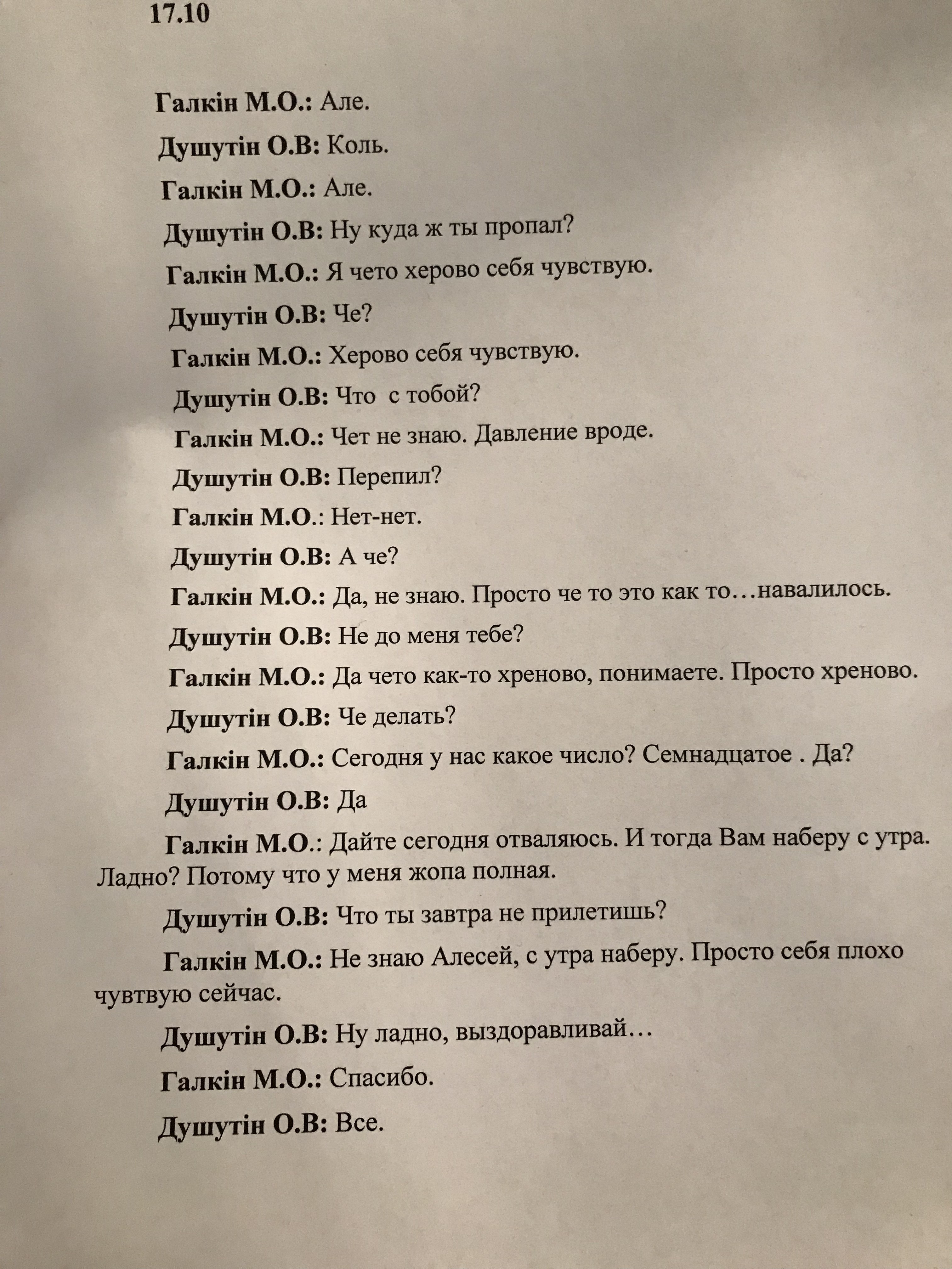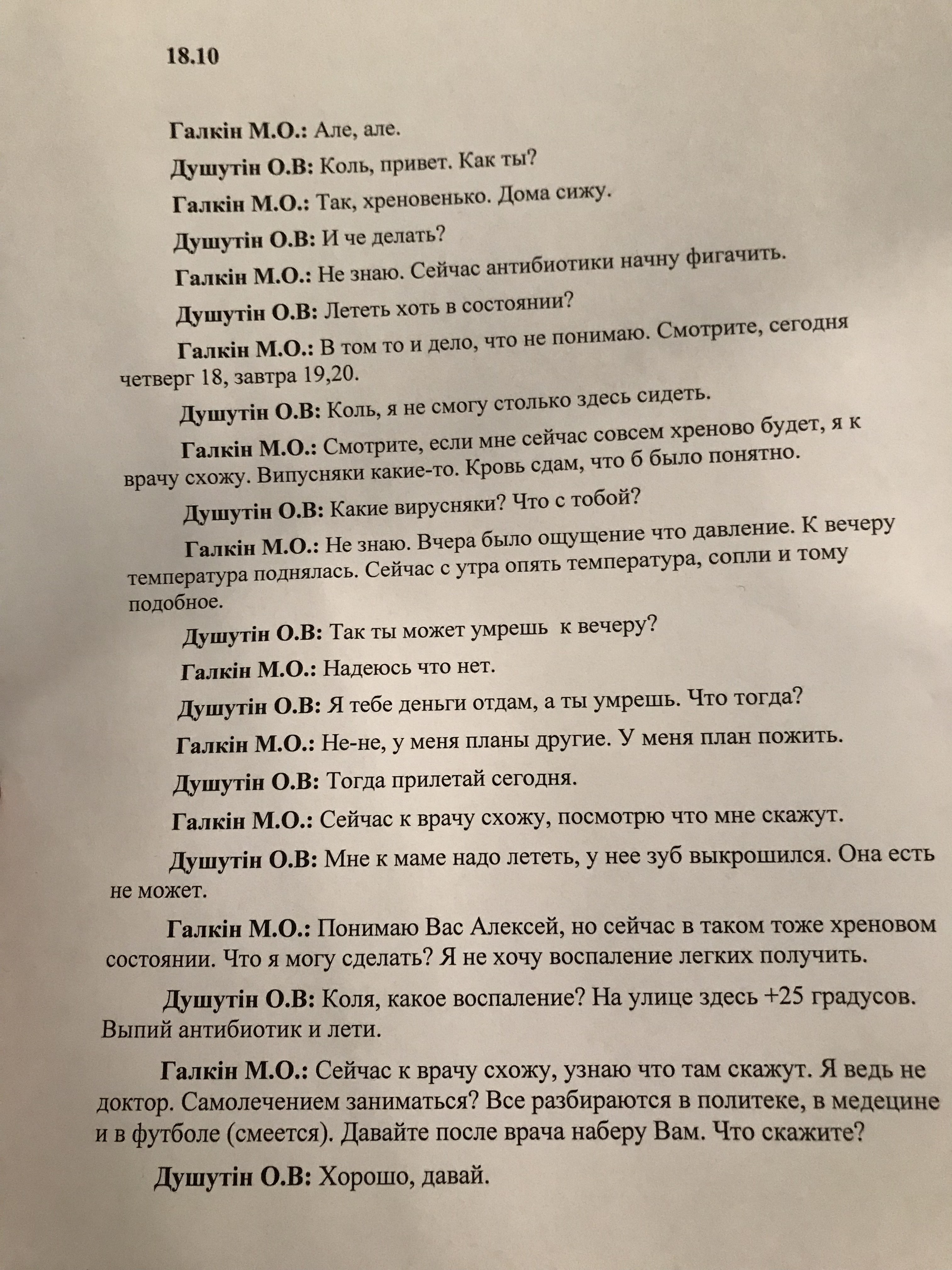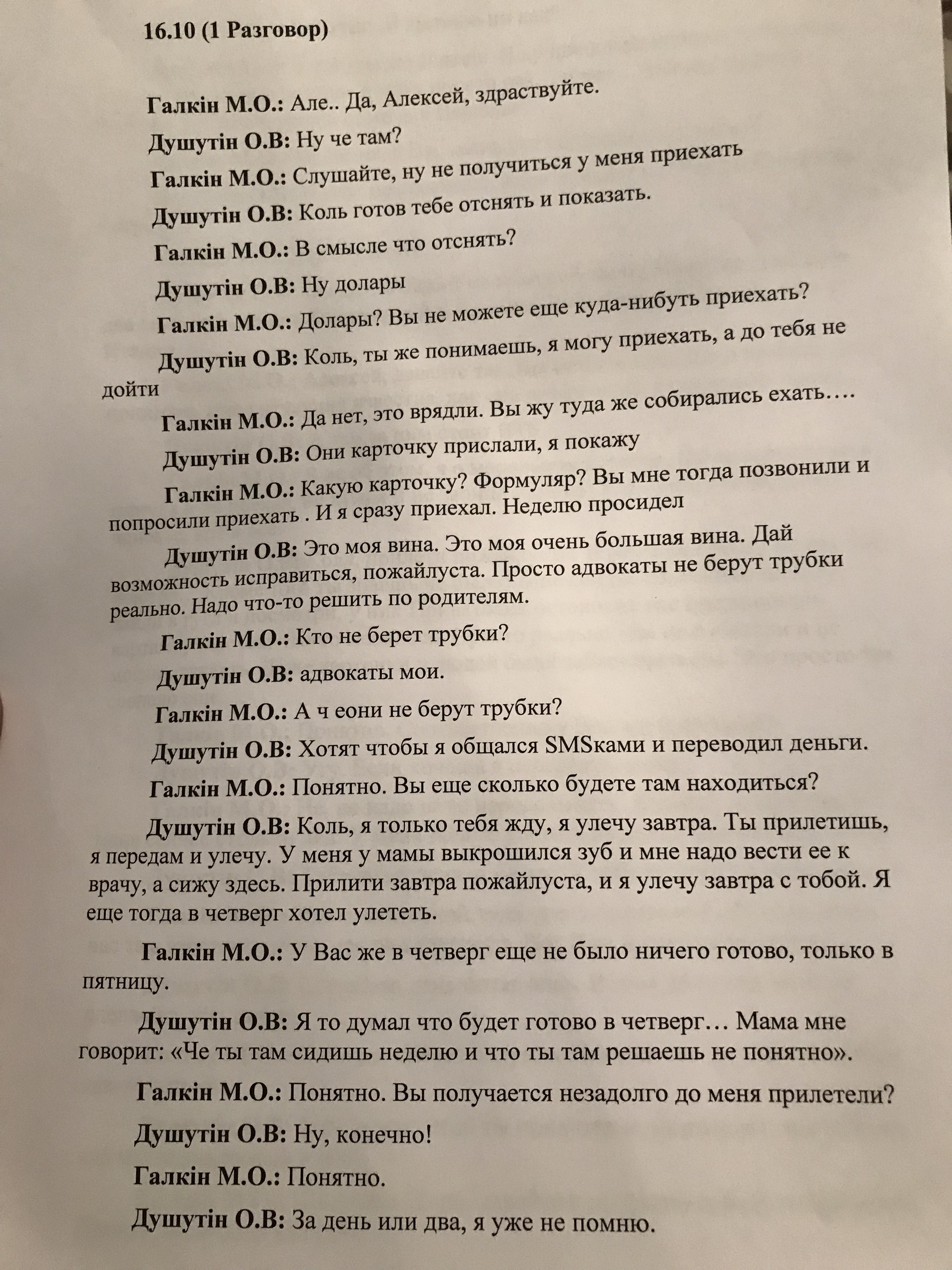 Расшифровка телефонных бесед между адвокатом Галкиным и Алексеем Душутиным, источник фото: "Страна"