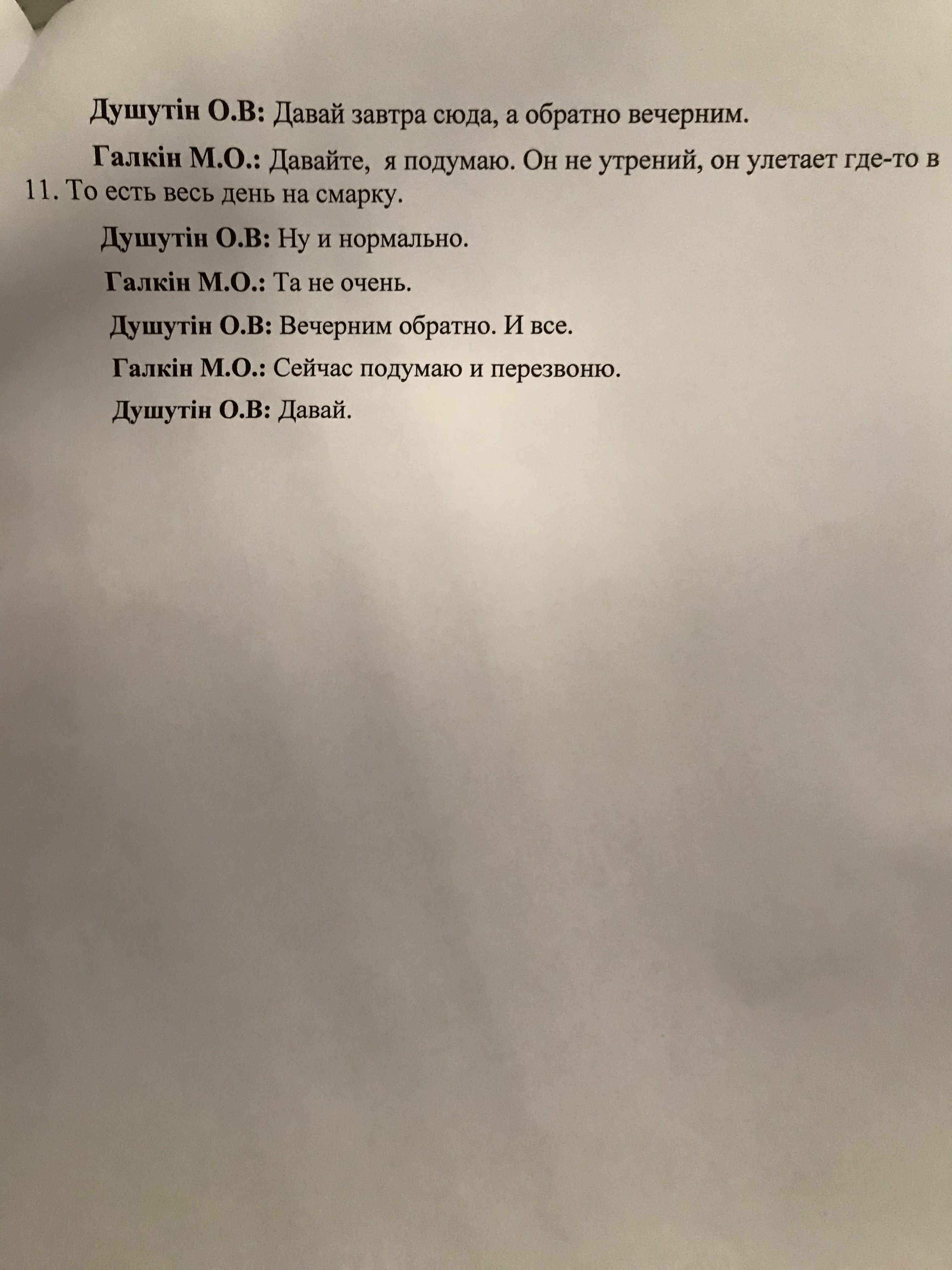 - Душутин: А вы эту схему привезли рейдерскую, которую вам дали? Распечатанную?