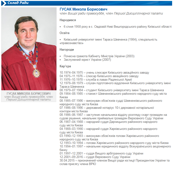 С 1997 года наш герой стал судьей Высшего арбитражного (с 2001 года — хозяйственного) суда, а в 2005 году перешел на работу в Верховный суд. То есть, всю судебную систему Николай Гусак хорошо знает изнутри: