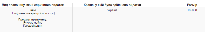Эти данные были в декларации Тимошенко-нардепа и первоначальном варианте декларации Тимошенко-кандидата. Однако в окончательном варианте кандидатской декларации расходы на сумму 185 тысяч куда-то "потерялись".