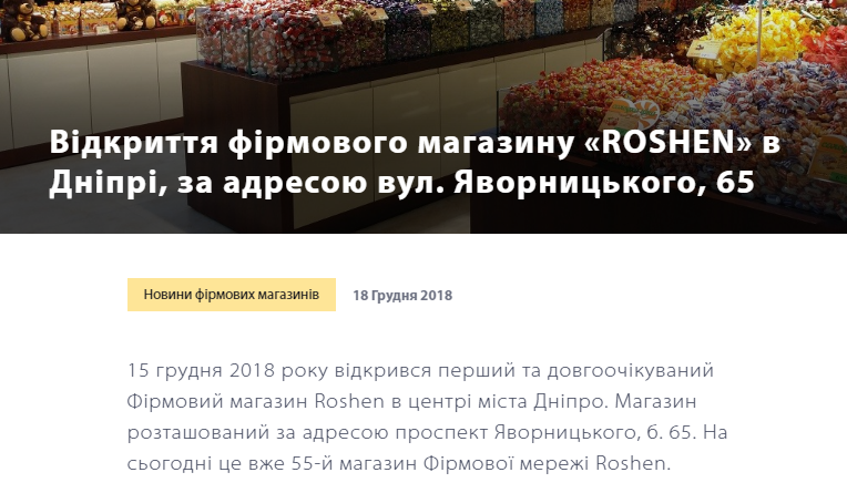 Интересно, что в декабре прошлого года по этому адресу был открыт новый магазин "Рошен". Об этом сообщается на сайте кондитерской корпорации: