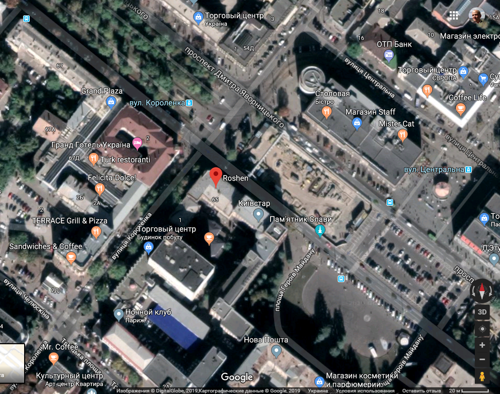 В сервисе "Гугл карты" здание по адресу пр.Яворницкого, 65 уж отмечено как местоположение магазина "Рошен":