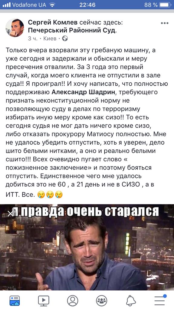 Вот что говорит на этот счет адвокат Комлев, который представляет интересы той самой "гражданки Украины", которая якобы помогала диверсантам легализоваться в Киеве.