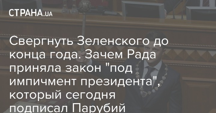 Сегодня спикер Верховной Рады Андрей Парубий подписал депутатский (а не президентский) закон об импичменте, принятый 6 июня.
