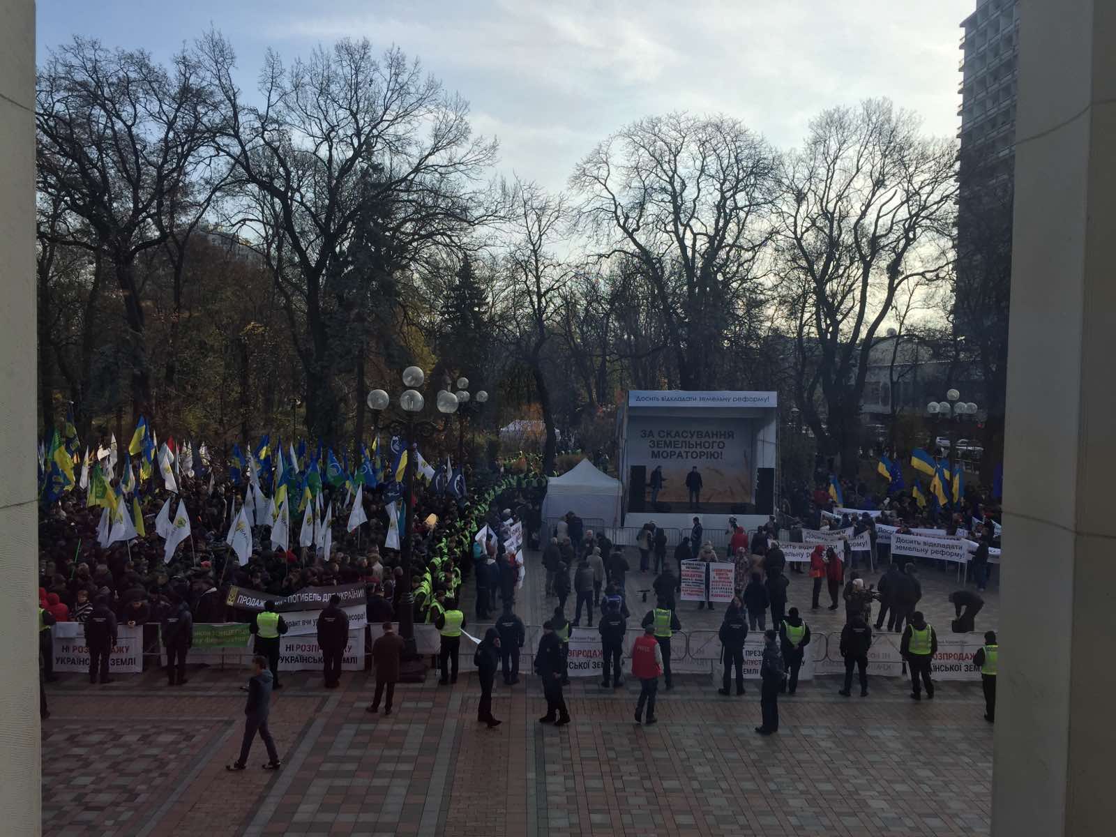 Еще одной причиной переноса рассмотрения реформы могли стать протесты, которые накануне прошли в 13 областях под эгидой Всеукраинского аграрного совета, из-за которых автомобильные дороги были блокированы противниками создания рынка сельскохозяйственных земель.