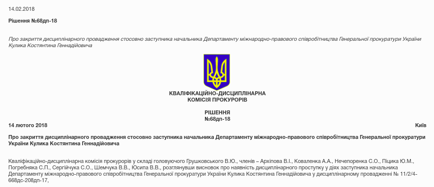 В свое время даже прокурорская квалифкомиссия отказалась наказать Кулика. Вот это сакраментальное решение.