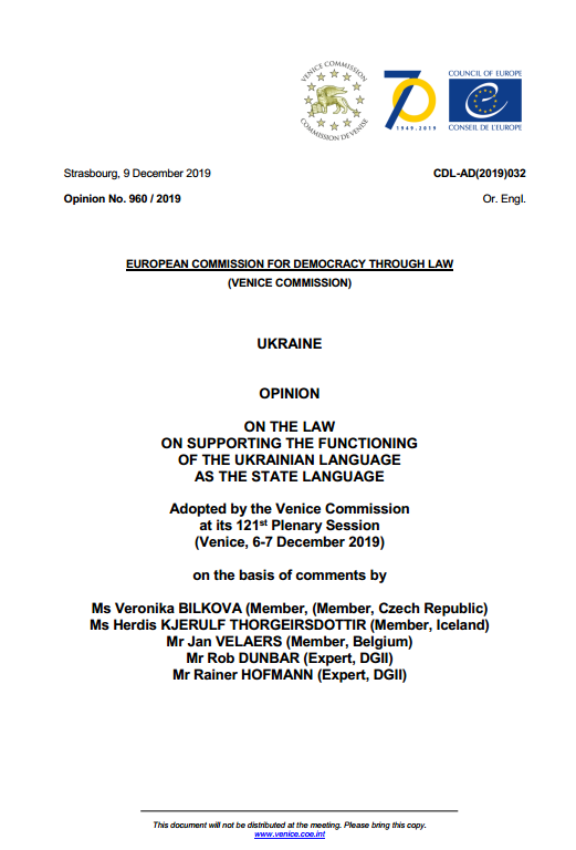 Отчет Европейской комиссии по демократии через право (это полное название Венецианской комиссии) посвящен скандальному закону "О поддержке функционирования украинского языка как государственного языка".