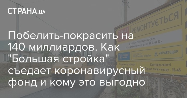 Сегодня парламент принял за основу законопроект №3509, который предусматривает выделение на строительство дорог еще 35 млрд гривен из коронавирусного  фонда. То есть, на стройки предлагается потратить большую часть средств, запланированных на борьбу с коронавирусом и спасение экономики.