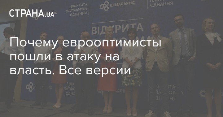 Версия популярная в околопрезидентском окружении и внутри БПП. Ее суть сводится к тому, что все, что сейчас происходит - это действия, направленные на рост популярности партии "Демократический альянс", в который вошли и активно раскручивают сейчас "еврооптимисты".