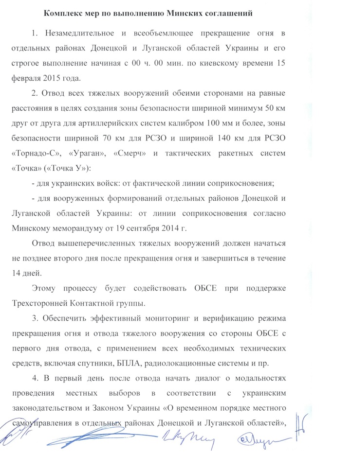 12 февраля 2015 года в столице Беларуси был подписан новый документ, который назывался "Комплекс мер по выполнению минских соглашений". Часто его сокращенно также называют "Комплекс мер".