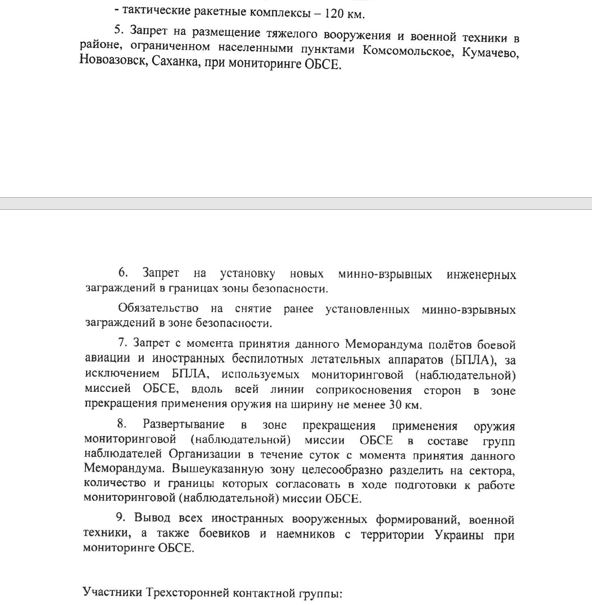 Отметим, что полное прекращение огня уже было предусмотрено раньше, в обоих минских соглашениях. В первом соглашении ("Минск-1"), которое подписали 15 сентября 2014 года, в первом и третьем пунктах постулировались общий запрет на применение всех видов оружия и запрет на ведение наступательных операций: