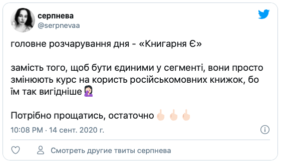 Некоторые считают, что книжный магазин отказывается от борьбы за украиноязычного читателя ради увеличения прибыли.