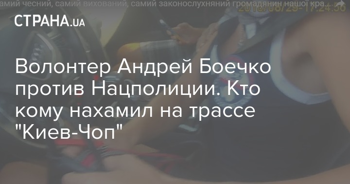 В волонтерской среде разгорается очередной громкий скандал. Известный украинский волонтер Андрей Боечко, который курирует премию Народный герой Украины, поссорился на дороге с представителями Нацполиции. На своей странице в Facebook Боечко на днях написал, что его с семьей на 203-м километре трассы "Киев-Чоп" (возле Житомира. - Прим. Ред.) остановили патрульные, нахамили, а "когда поняли, что бабла не получат, пошли себе вон".