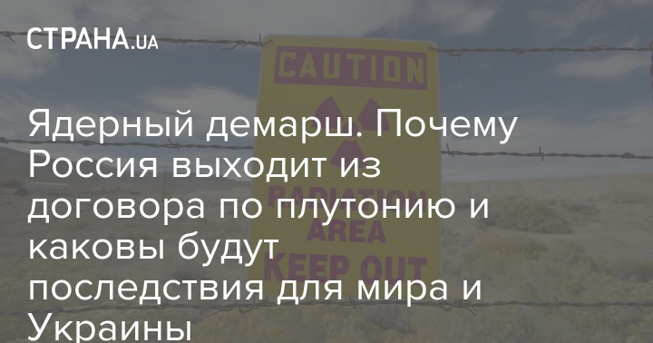 Россия выходит из договоренностей с США по утилизации плутония - сырья для ядерного оружия. Этот шаг вполне логично ложится в резкое ухудшение отношений между Вашингтоном и Москвой, которое происходит в последние дни. Что означает решение РФ и может ли оно снова возродить угрозу ядерной войны - отвечает "Страна".