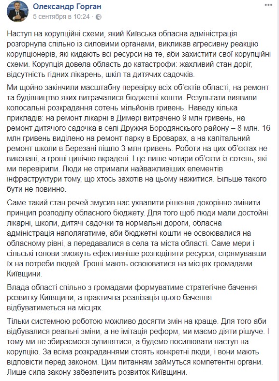Губернатора Киевщины Александра Горгана народные избранники потребовали уволить с должности.