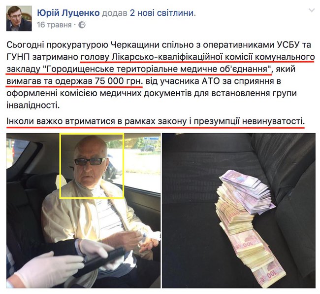 Вместо этого, еще задолго до рассмотрения уголовных производств судами, прокурорское начальство выносило свои "Facebook-вердикты", представляя задерживаемых по подозрению в коррупции лиц как людей, чья вина уже доказана. Тем самым попирая принципы презумпции невиновности.
