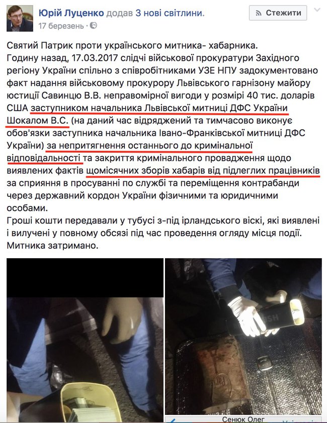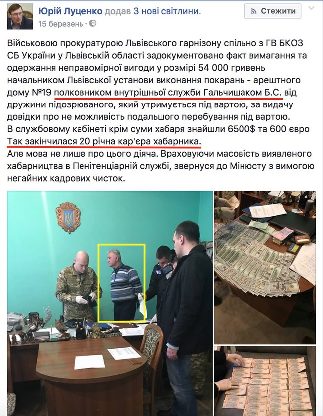 По их оценке, сразу в пяти постах в ФБ военный прокурор щедро награждал фигурантов уголовных производств (расследованием которых занимается "военка"), отсылками к тому, кто и сколько из них якобы украл денег из бюджета.