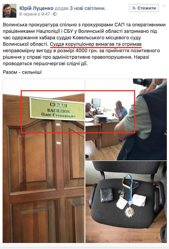 По состоянию на конец июня они насчитали как минимум пять постов на странице Луценко в Facebook с нарушением принципов презумпции невиновности.