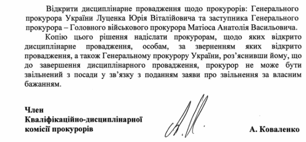 На днях стало известно, что активисты добились открытия в отношении Юрия Луценко и его зама - главного военного прокурора Анатолия Матиоса дисциплинарных производств.