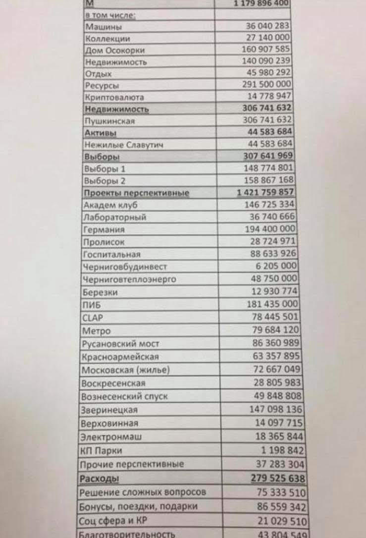 — Это я понял только со временем, когда стал акционером, два месяца назад. Я провёл управленческий аудит их деятельности. И увидел, что там никогда не формировались управленческие отчеты о прибыли и убытках. Приходили деньги инвесторов, которые распределялись ровно так, как считал нужным Микитась, на вещи, не связанные со стройкой. Около трех миллиардов ушло на личную жизнь. Я вам табличку покажу сведенных расходов на пять лет. Там и коллекции и машины и выборы и элитная недвижимость.