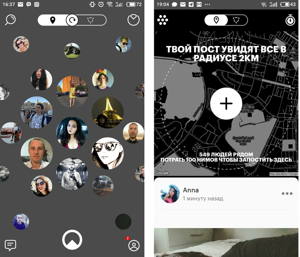 Интерфейс. Nimses внешне напоминает Bаdoo – социальную сеть для знакомств, которая существует с 2006 года и принадлежит российскому бизнесмену Андрею Андрееву. Да и в принципе, идея оплаты за время, проведенное в соцсети, и подвязка на геолокацию – не нова для приложений. Тот же Tinder или дейтинговый сервис Happn дает возможность познайомиться с людьми, которые находятся рядом или виделись с вами на протяжении дня. Популярное в свое время приложение Prisma также недавно презентовало соцсеть, основанную на геолокации. А соцсети Steemit и Golos платят пользователям за публикации.