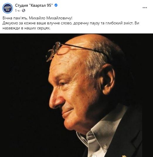 "Вечная память, Михаил Михайлович! Спасибо за каждое ваше точное слово, уместную паузу и глубокий смысл. Вы навсегда в наших сердцах" - отреагировала Студия "Квартал 95".
