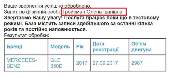 Согласно выписке из Реестра министерства внутренних дел, 27.09.2017 Елена стала владелицей люксового немецкого внедорожника текущего года выпуска.