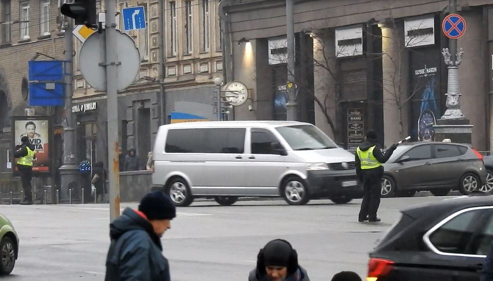 Но в этот раз возле Бессарабской площади они остановили машины со всех сторон ради премьера и кортеж Гройсмана повернул налево с Большой Васильковской улицы на бульвар Тараса Шевченко, хотя на этом перекрестке левый поворот запрещен. Висит знак только прямо или направо с крайней правой полосы.