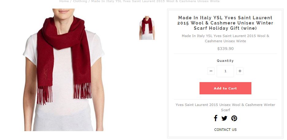 Это шарф из коллекции 2015 года. Найти его в продаже практически невозможно. Но на некоторых сайтах его еще можно заказать по цене $339 или 9 476 грн (по курсу НБУ на 03.02.2018). Это больше пяти прожиточных минимумов, который на сегодня составляет – 1762 гpн.