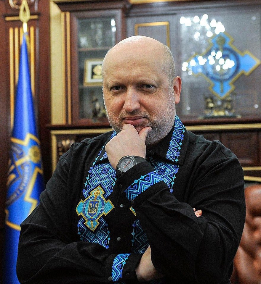 Повеселила соцсети фотография Александра Турчинова, секретаря СНБО. Он предстал в черной вышиванке с вышитым гербом на фоне такого герба в серванте.