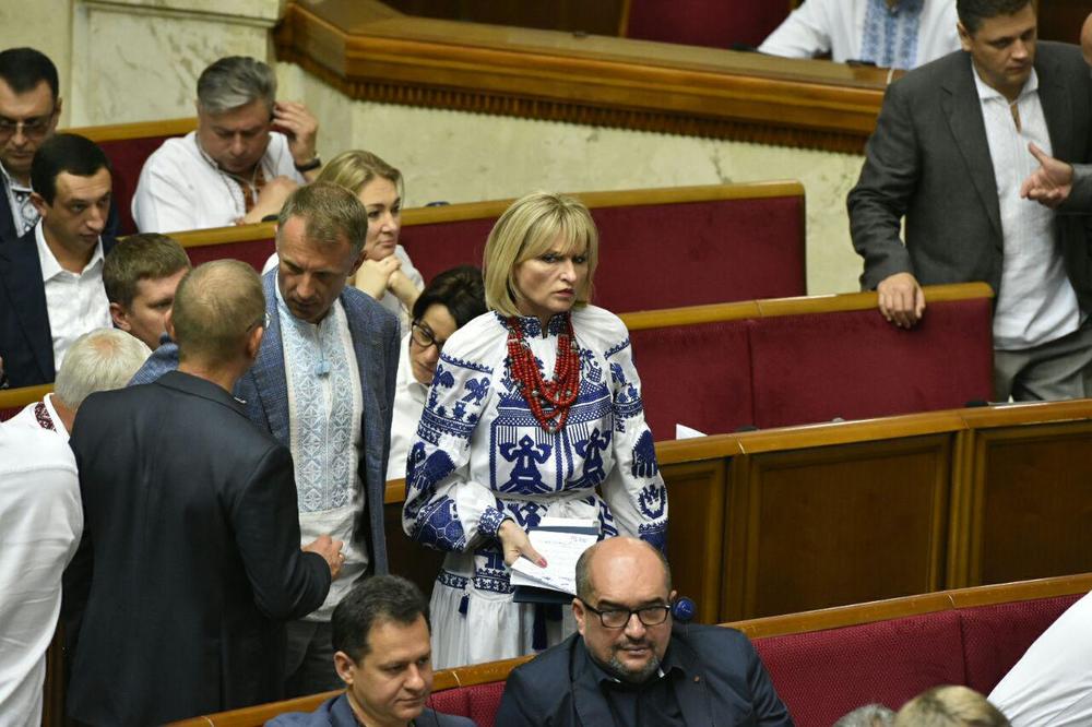 Народные депутаты не исключение, она пришли на заседание Верховной Рады в украинской национальной одежде в честь праздника. Отметим, что наши парламентарии наряжаются в вышитые платья и сорочки не только в этот день, но сегодня почти все присутствующие в сессионном зале придерживались "украинского дресс-кода".