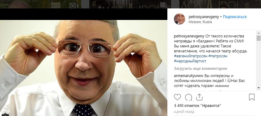 В это же время сам Петросян написал в своем фотоблоге Instagram, что журналисты очень много додумывают а этой истории. Этот пост набрал уже больше 3000 лайков.