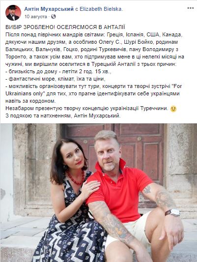 Кстати, жить в Украине Мухарский и Бельская не будут. "Выбор сделан! Поселяемся в Анталии", – заявил в начале августа Антин Мухарский. Шоумен тогда же рассказал, что за шесть месяцев эмиграции он успел пожить в Греции, Испании, США и Канаде. И все же выбор страны остановился на Турции.