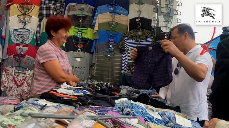 А до этого глава "Радикально партии" выбрался на рынок в Миргороде (Полтавская область), где решил прикупить себе трусов. Видеодоказательство он, конечно, же выложил к себе на страницу в социальной сети Facebook и в очередной раз опростоволосился, так как покупает трусы за 40 гривен, стоя у прилавка в брендовой футболке за 6250 гривен. А если точнее, то на Олеге Ляшко белое поло (трикотажная футболка с двумя-тремя пуговицами со стояче-отложным воротником) известного британского бренда Burberry.