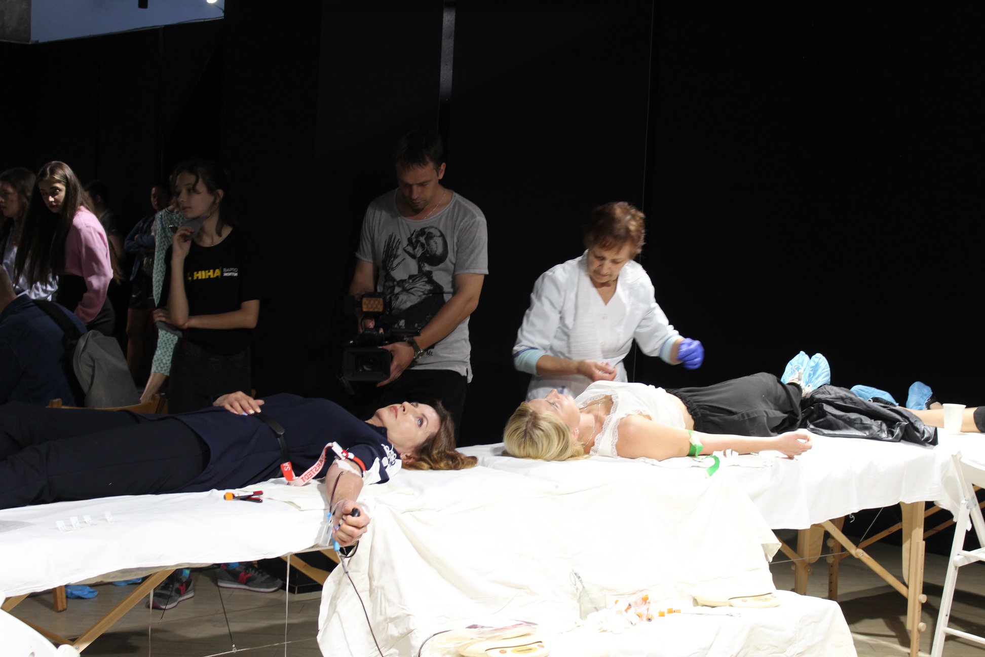 Кстати, если Петру брали кровь в медпункте на НСК "Олимпийский", то манипуляции с Мариной проводили прямо в Довженко-Центре (крупнейший киноархив Украины).