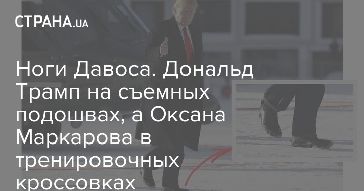Впечатлил 73-летний Дональд Трамп, президент США. Он прибыл на Всемирный экономический форум в очень актуальных для снежной зимы и гололеда накладках на обувь. Об этом написал фотограф Элиот Ваглэнд в своем микроблоге в Twitter.