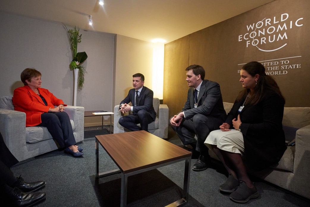 Слева направо: Кристалина Георгиева, Владимир Зеленский, Алексей Гончарук, Оксана Маркарова, фото: president.gov.ua