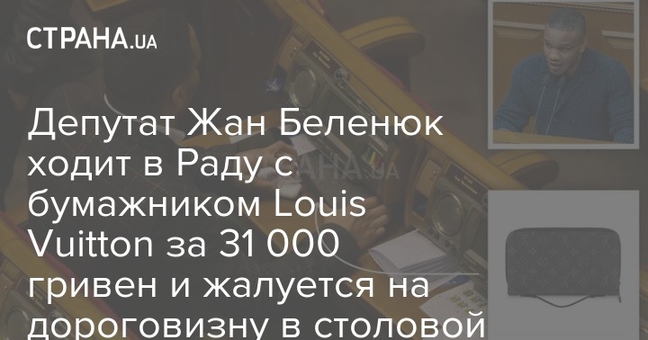 По наблюдениям "Страны", Жан Беленюк, который жалуется на прайс-лист парламентского ресторана, ходит в парламент с модным аксессуаром известного французского бренда Louis Vuitton.