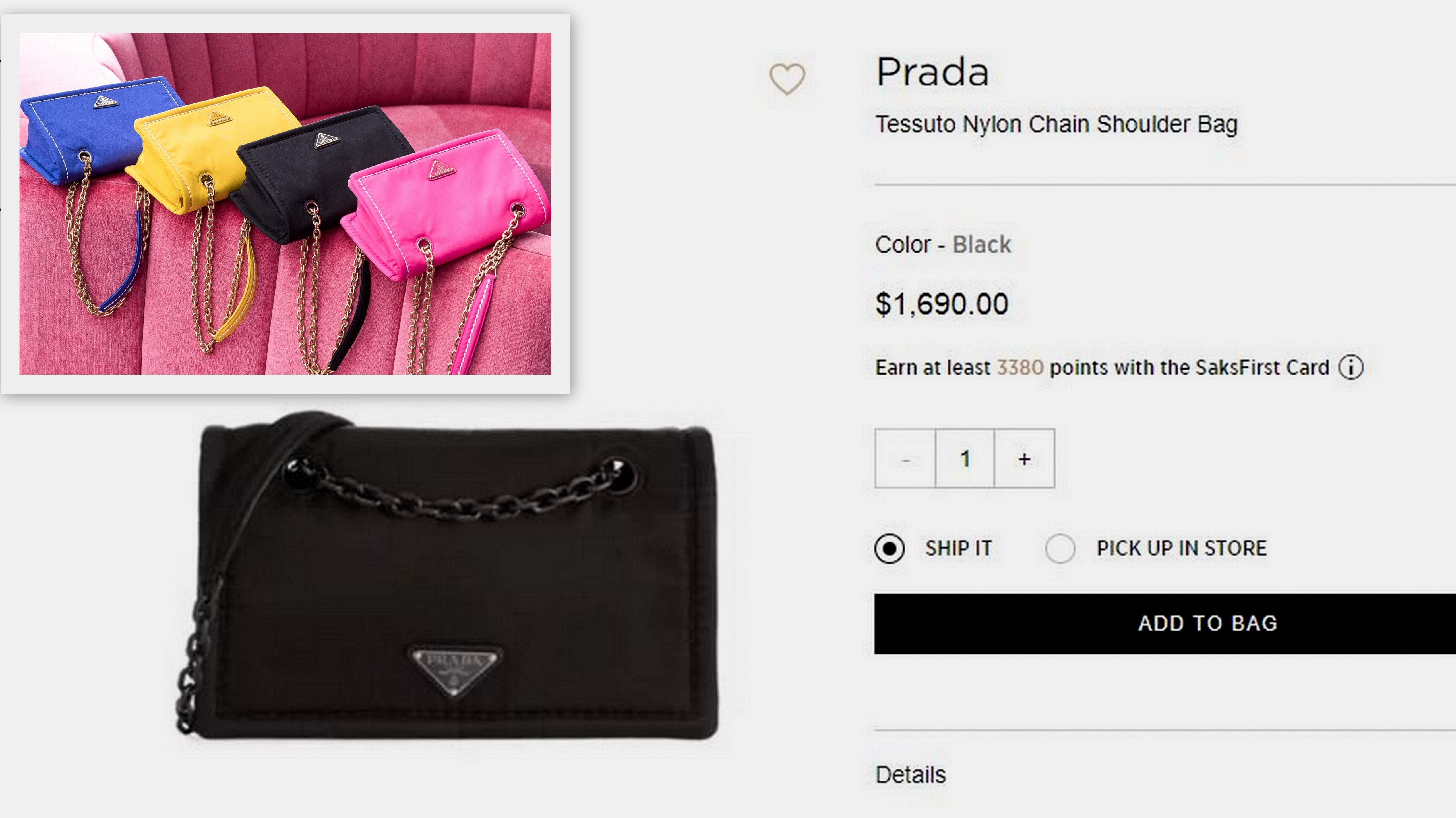 Сумка Prada Tessuto Chain Bag изготовлена из нейлона, что делает ее невероятно прочной. Представлены они в сочной цветовой гамме. Заказать в онлайн-магазине можно такую за $1690.