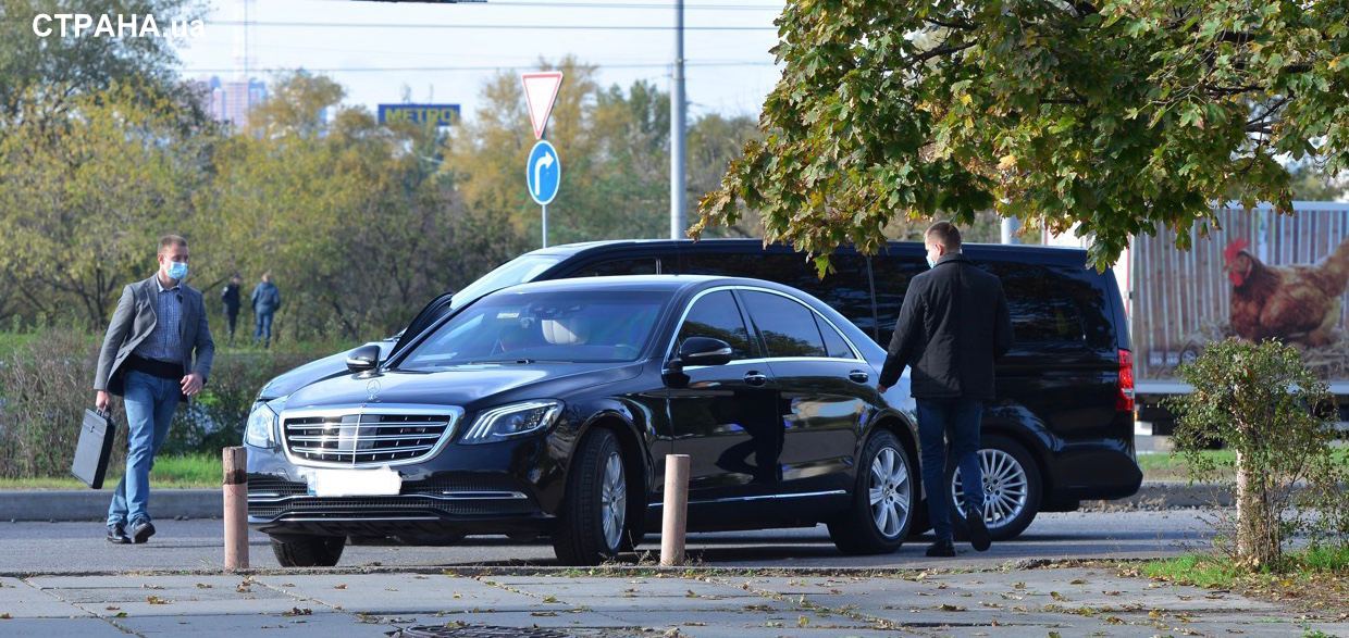 В воскресенье Владимира и Елену Зеленских привез традиционный кортеж: представительский седан Mercedes-Benz и микроавтобус сопровождения такой же марки.